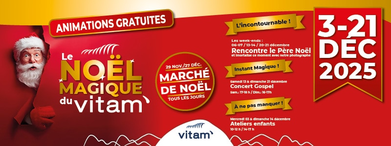 Vitam vous invite à partager des moments inoubliables en famille. Profitez de animations gratuites, d’un marché de Noël rempli de trésors artisanaux, et laissez-vous emporter par la magie des spectacles et des concerts.